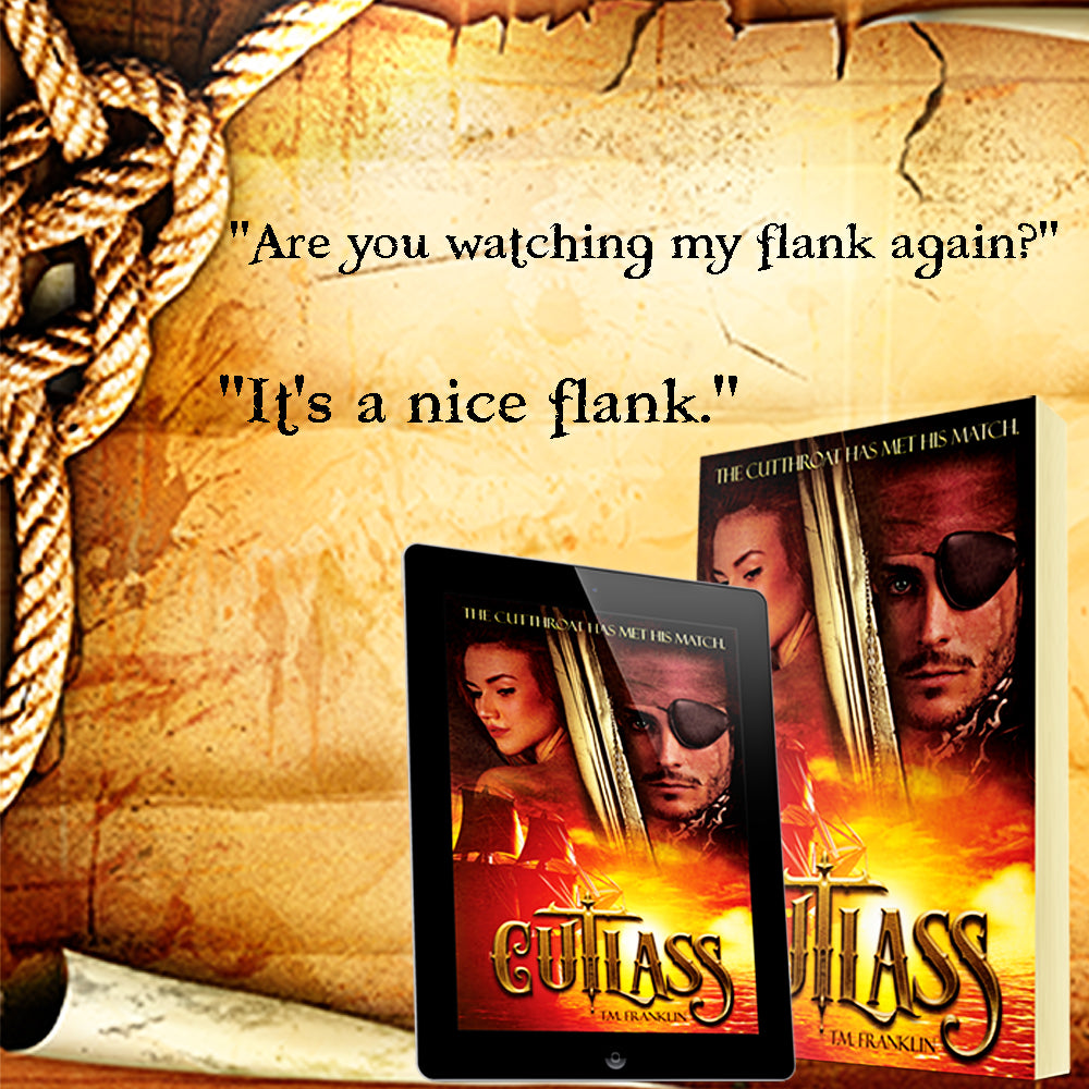 Taking a long swallow from the tankard, he collapsed into a carved wooden chair he’d liberated during a raid the previous summer while rubbing a hand absently over his scruffy cheek. He could glimpse the blue sky out the porthole above the bed, the swaying of the ship bringing the deeper blue of the sea into view every few seconds. He was lulled by the hypnotic swaying of his ship, combined with the relaxing buzz of the rum. So much so, that at first he didn’t realize his cabin boy had returned, a steaming bowl of water in his hands.